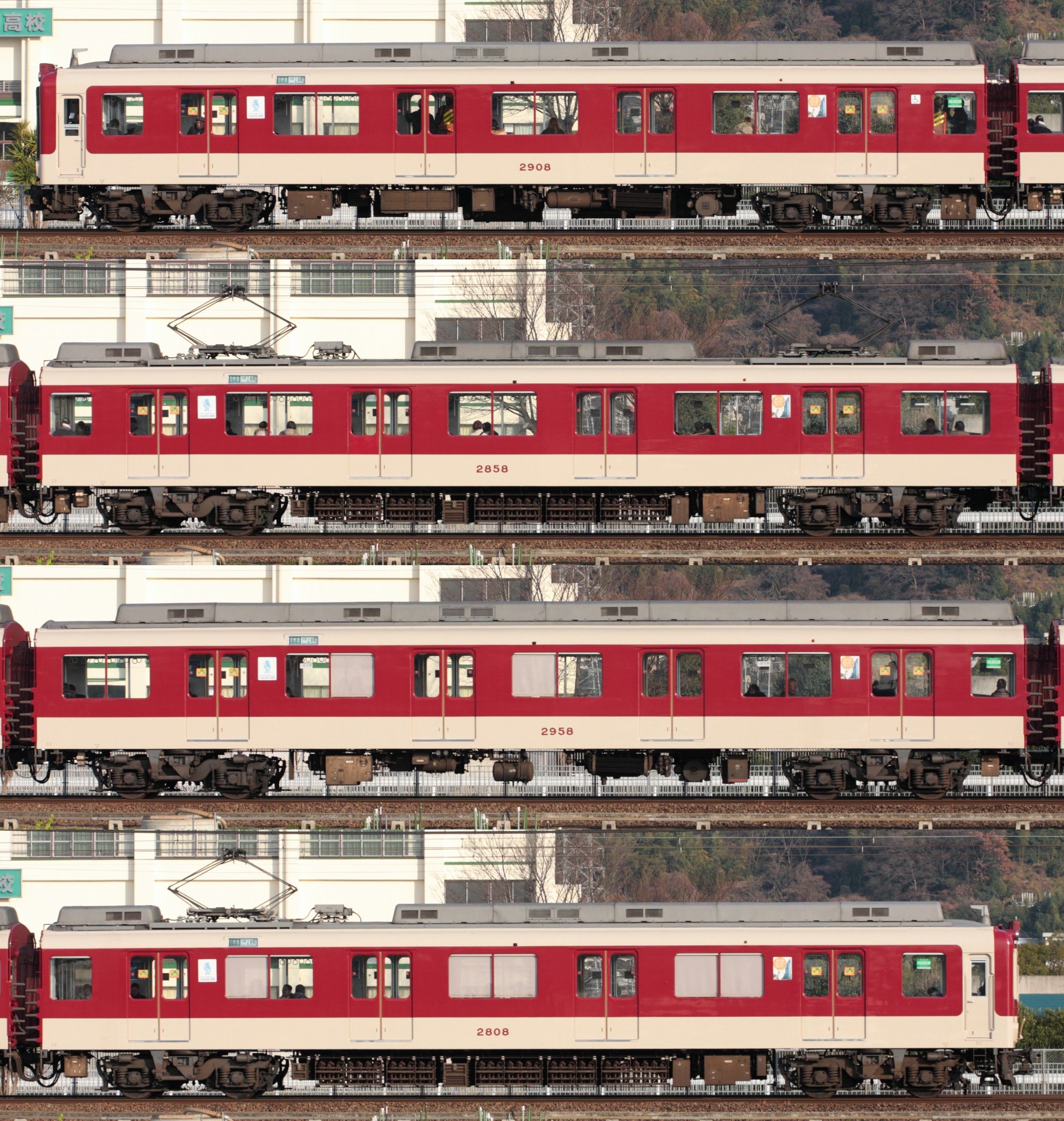 【側面写真】2800系/AX08 コメントを残す 2800系AX08 C#2908-2858-2958-2808 AX05からこのAX08までの4編成については、サ2950形に軌条塗油器が搭載されています。 ・南側