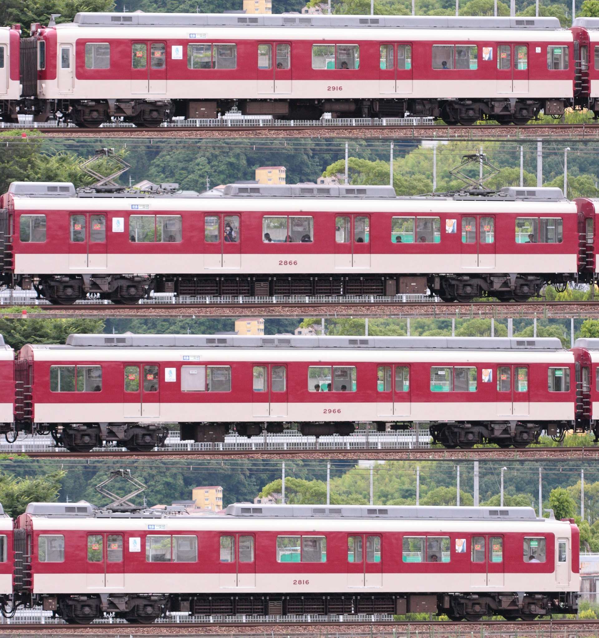 2800系の最終形態といえる編成で、登場時からPT48形パンタグラフを装備し、その取付位置もAX15までの編成と比べると車端寄になっています(後付けPT48のAX07と比べると一目瞭然です)。