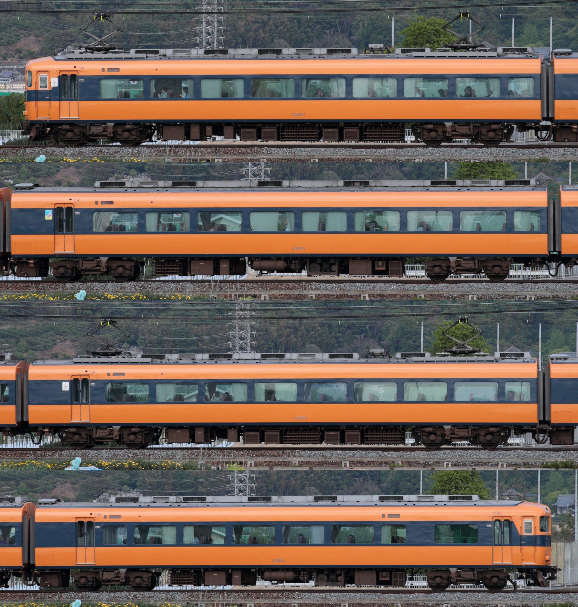 【側面写真】12400系/NN01 コメントを残す 12400系NN01 C#12401-12551-12451-12501 喫煙ルーム設置後、現行塗装になるまでの姿です。 2010年代に入り、台車にヨーダンパが後付けされたのが特徴です。 南側